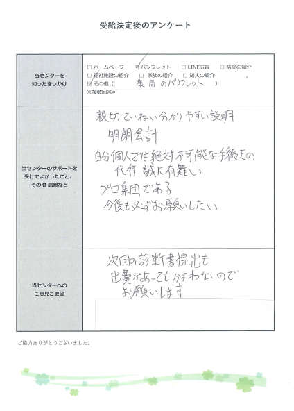 次回の診断書提出も出費があってもかまわないのでお願いします。